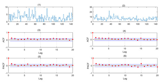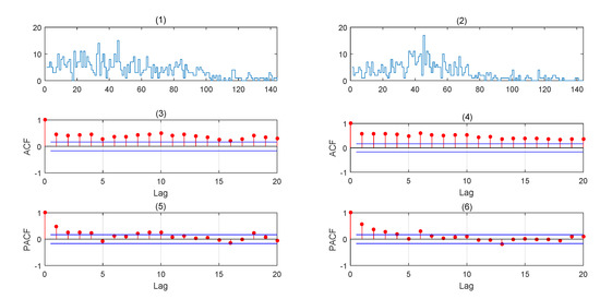 - Shumway, R.H.; Stoffer, D.S. Time Series Analysis and Its Applications with R examples, 3rd ed.; Springer: New York, NY, USA, 2011. [Google Scholar]