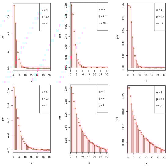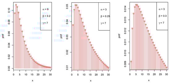 If we take and , based on (3), the pmf of the considered distribution is obtained as