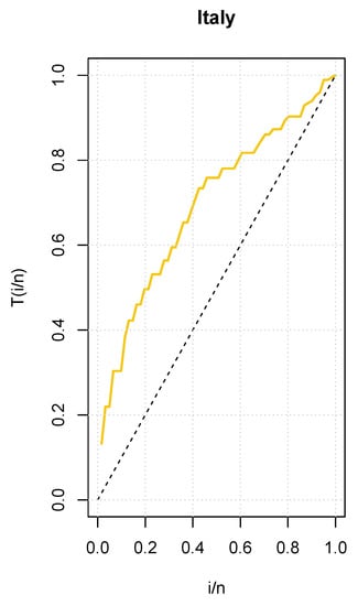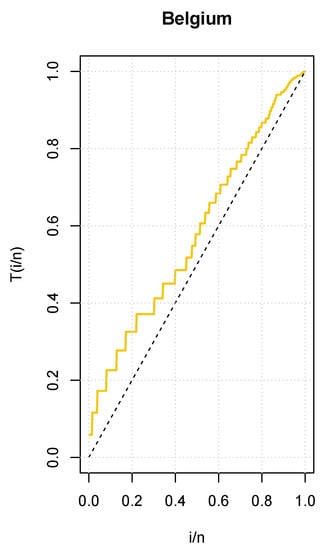Total Time on Test (TTT) plot for the COVID-19 data set of Belgium.