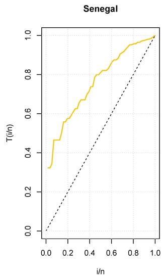 Total Time on Test (TTT) plot for the COVID-19 data set of Senegal.