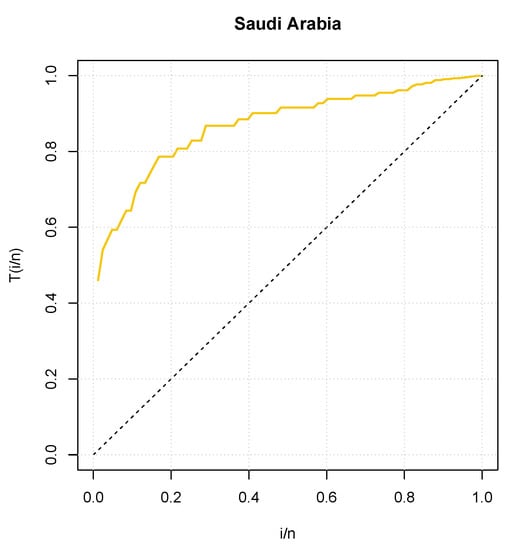 Total Time on Test (TTT) plot for the COVID-19 data set of Saudi Arabia.