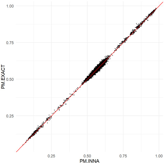 Comparison of the INNA method and the exact method using the PMs of the ward proportions.