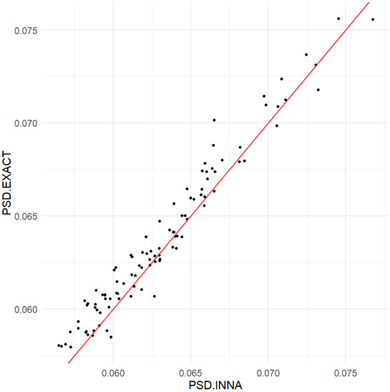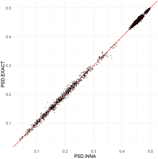 Comparison of the INNA method and the exact method using the PSDs of the household proportions.