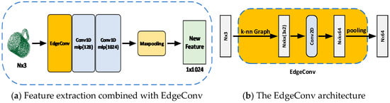 In ReAgent, fewer embedding layers are considered to learn the expressive feature vector sufficiently. However, some works like PointNet++ and DGCNN have proved that the local features are important to improve the accuracy of point cloud recognition and segmentation. DCP also uses DGCNN in feature extraction for better registration results. Although these local feature extraction methods require additional computing costs, local features about the positional relations between points and neighboring points are necessary for feature embedding. Based on extensive experiments, the new framework in this paper replaces the PointNet-like architecture by feature extraction layers combined with EdgeConv. The improved state-embedding module is shown in Figure 3a.