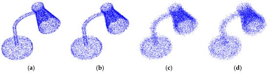 Examples of point cloud with different variance of Gaussian noise. (a) Model without noise; (b) ; (c) ; (d) .