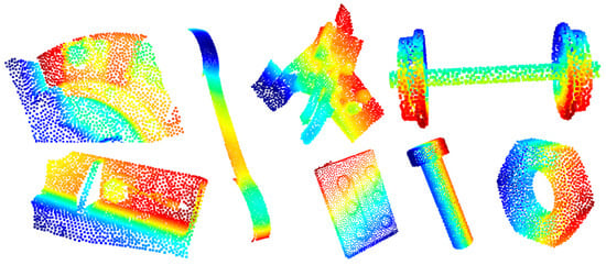 Furthermore, an additional category containing train components was manually collected (see []). Figure 6 shows 8 component point clouds such as traction rods, bolts, and wheelsets. They also have 2048 points with some noise after resampling. So, there are 16 categories and 589 point cloud models in the evaluated dataset.