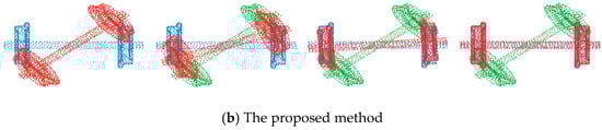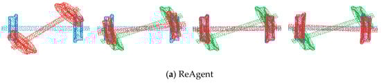Table 1 shows the experimental results on ModelNet40. Due to a different testing environment, the results of ReAgent were slightly different from the original paper, while the main patterns were found consistent. It can be seen that the new method and ReAgent obtained smaller errors of rotation and translation than the DCP-v2 [] and PointNetLK []. Additionally, the errors of the new method are smaller than ReAgent in all 40 categories, while the running speed of ReAgent is faster. Although the running time of the new method is slower than ReAgent and DCP-v2, the accuracy of the new method in registration is better.