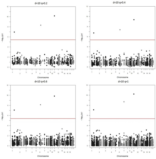 - Li, B.; Leal, S.M. Methods for detecting associations with rare variants for common diseases: Application to analysis of sequence data. Am. J. Hum. Genet. 2008, 83, 311–321. [Google Scholar] [CrossRef]