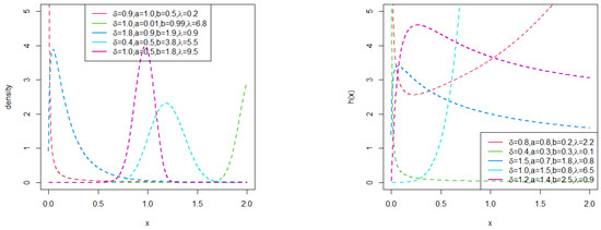 Consider the Weibull distribution with cdf and pdf given by and , respectively, for and , as the baseline distribution; then, we obtain the RB-TL-TII-EHL-W distribution with cdf and pdf given by