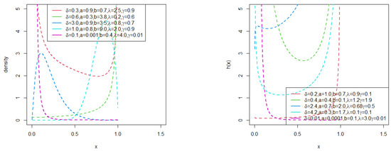 Figure 1 shows the plots of the pdf and the hrf of the RB-TL-TII-EHL-W distribution for different parameter values. The pdf can take several shapes including right-skewed, left-skewed, unimodal, J and reverse-J shapes. The RB-TL-TII-EHL-W hazard displays increasing, decreasing, bathtub, and upside-down bathtub shapes.