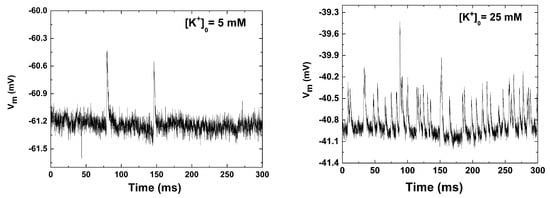 - Adrian, R.H. The effect of internal and external potassium concentration on the membrane potential of frog muscle. J. Physiol. 1956, 133, 631–658. [Google Scholar] [CrossRef]
