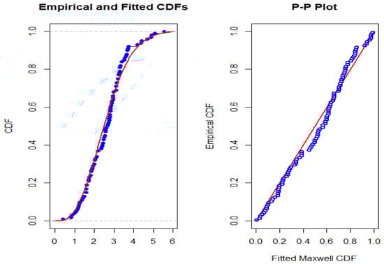 Empirical and fitted Maxwell distribution plots for real data.