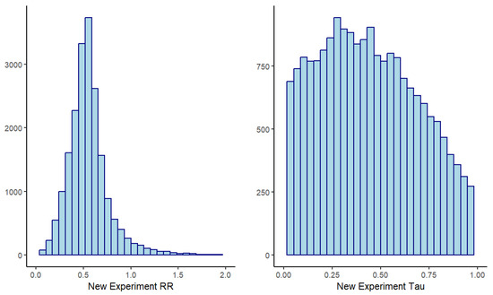 We conducted a simulation to investigate both the performance of the hierarchical model and the impact of between-trial variability on the informativeness of the resulting prior. We expand on the number of groups but use the data of Tang and Jiang (2011) [6] to determine the parameter values for our first simulation. The dataset they examine is for a two-phase treatment regimen in which a sample of patients first receives an initial treatment. Those who do not show improvement then proceed to a follow-up treatment. The parameter of interest is the risk ratio. Values less than 1 indicate that the second regimen leads to an improvement. In the work of Tang and Jiang [6], the groups are based on the severity of disease. This would likely violate the exchangeabilty assumption of our model, but the example works as an illustration. They find the s’ center approximately around 0.4 and the risk ratios’ center approximately at 0.7. Therefore, for our simulation, we chose = 0.4, = 20, and = log(0.7). We also looked at the case where the risk ratio is centered above one to make sure performance was not impacted in that case.