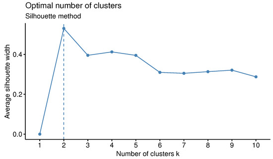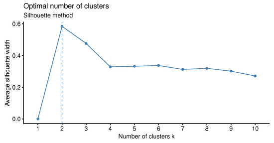 Lastly, the optimal number of clusters is determined by the average silhouette criterion [73] in both the first case (i.e., the univariate) and the second multivariate. In order, however, to have a more robust choice, the Davies–Bouldin index was computed as well. However, the gap statistic [74] or the total within the sum of squares could also be adopted as an alternative.