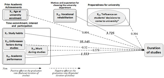 Accordingly, the framework proposed in this research assumes that students enter higher education with specific academic and personal attributes that serve as the foundation for their educational journey. These individual characteristics affect the duration of studies, as illustrated in Figure 1.