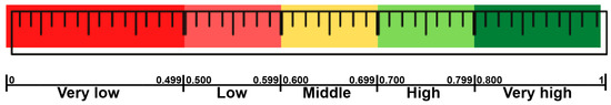 One of the key explanatory variables is the municipal human development index (MHDI), a numerical indicator ranging from 0 to 1. As illustrated in Figure 1, lower values indicate worse conditions, while higher values reflect better socioeconomic conditions. In this study, we use the disaggregated MHDI, which consists of three dimensions: income, health, and education. This allows for the estimation of their individual effects. The variable MHDI_I measures the average ability of a municipality’s population to acquire goods and services. MHDI_H incorporates information on life expectancy and mortality, while MHDI_E quantifies the educational level of both the adult and young population.