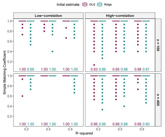 - Kipruto, E.; Sauerbrei, W. Comparison of variable selection procedures and investigation of the role of shrinkage in linear regression-protocol of a simulation study in low-dimensional data. PLoS ONE 2022, 17, e0271240. [Google Scholar] [CrossRef]