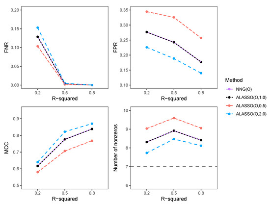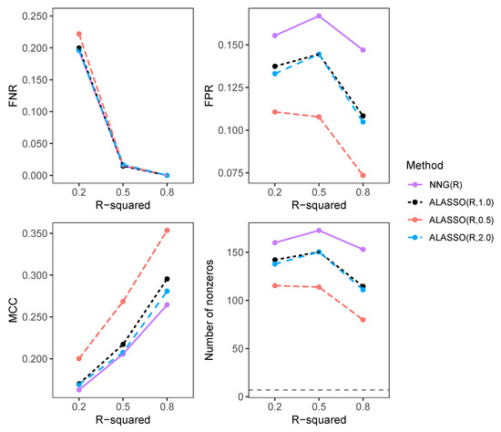 | ALASSO () | ALASSO () | ALASSO () | NNG | |
