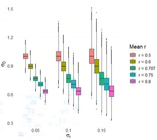 3.3. Simulation of Uncertainty of σD to Examine the Feasibility of the Proposed r = 0.75 for Equal Pre/Post-Variances