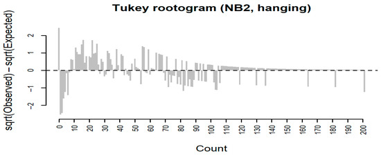 Tukey rootogram for NB2. Source: Author’s calculations using R 4.4.3.