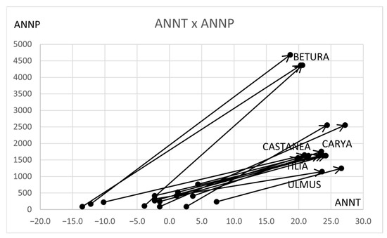The data is selected from the US Geological Survey (Climate—Vegetation Atlas of North America) [8]. The following eight features describe ten selected hardwoods: