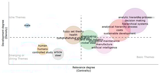 Bibliometric analysis, which involves examining keyword co-occurrence and trend analysis, can identify emerging areas where the AHP is increasingly applied within the steel industry. For instance, if terms like “sustainable supply chain,” “decarbonization,” or “Industry 4.0 adoption” are experiencing significant growth in AHP-related publications, this indicates new opportunities for their usage. Such insights can help guide researchers and practitioners in addressing critical and contemporary challenges facing the steel sector. Other suggestions for future studies would cover a comparison of the advantages and limitations of applying the different methods in steel plants or carrying out a bibliographic analysis in other databases and comparing the results obtained since this study focused mainly on the Scopus database. Propose AHP-driven equipment monitoring solutions, or an AHP maintenance workflow (e.g., weight allocation → strategy selection), could be other themes for future studies.