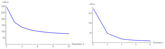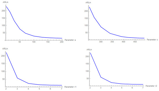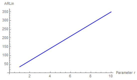 As it concerns the role of parameter r, we can easily deduce that, once its value decreases, the ARLin of the corresponding scheme becomes smaller (see Figure 3).