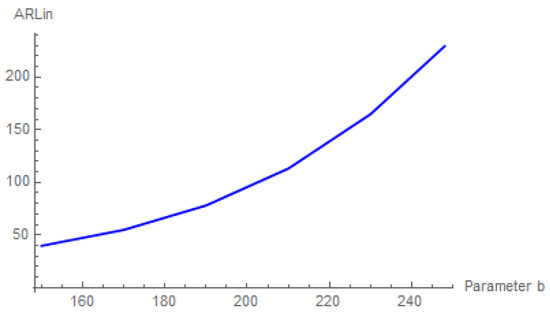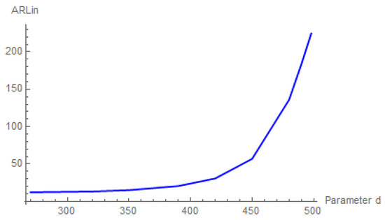 In addition, the practitioner is advised to determine the values of parameters b, d to be as large as possible in order to reach a larger ARLin. This is shown in Figure 5 and Figure 6.