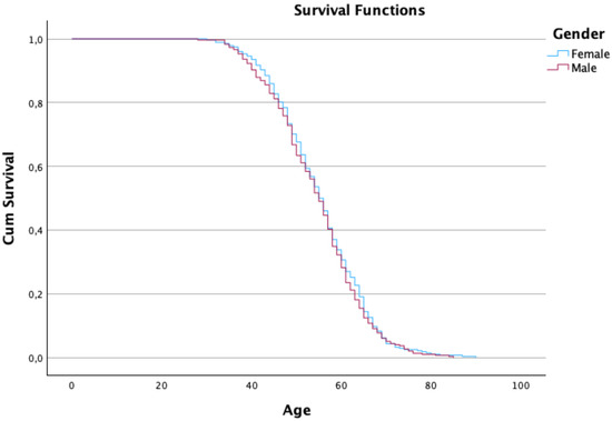 - According to Figure 1, survival probability decreased with increasing age. Patients over 80 years exhibited a pronounced decline in survival, and female patients maintained higher survival probabilities after age 80 compared to males.
