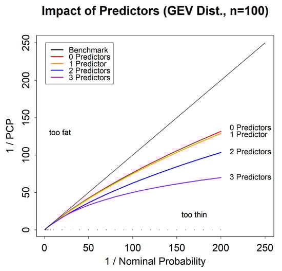 The results from these studies show that: (a) predictions generated using maximum likelihood, method of moments and PWM all underestimate tail probabilities; (b) the tail underestimation is larger for smaller sample sizes; (c) the tail underestimation is larger, in a relative sense, further into the tail and (d) the tail underestimation is larger when predictors are included.
