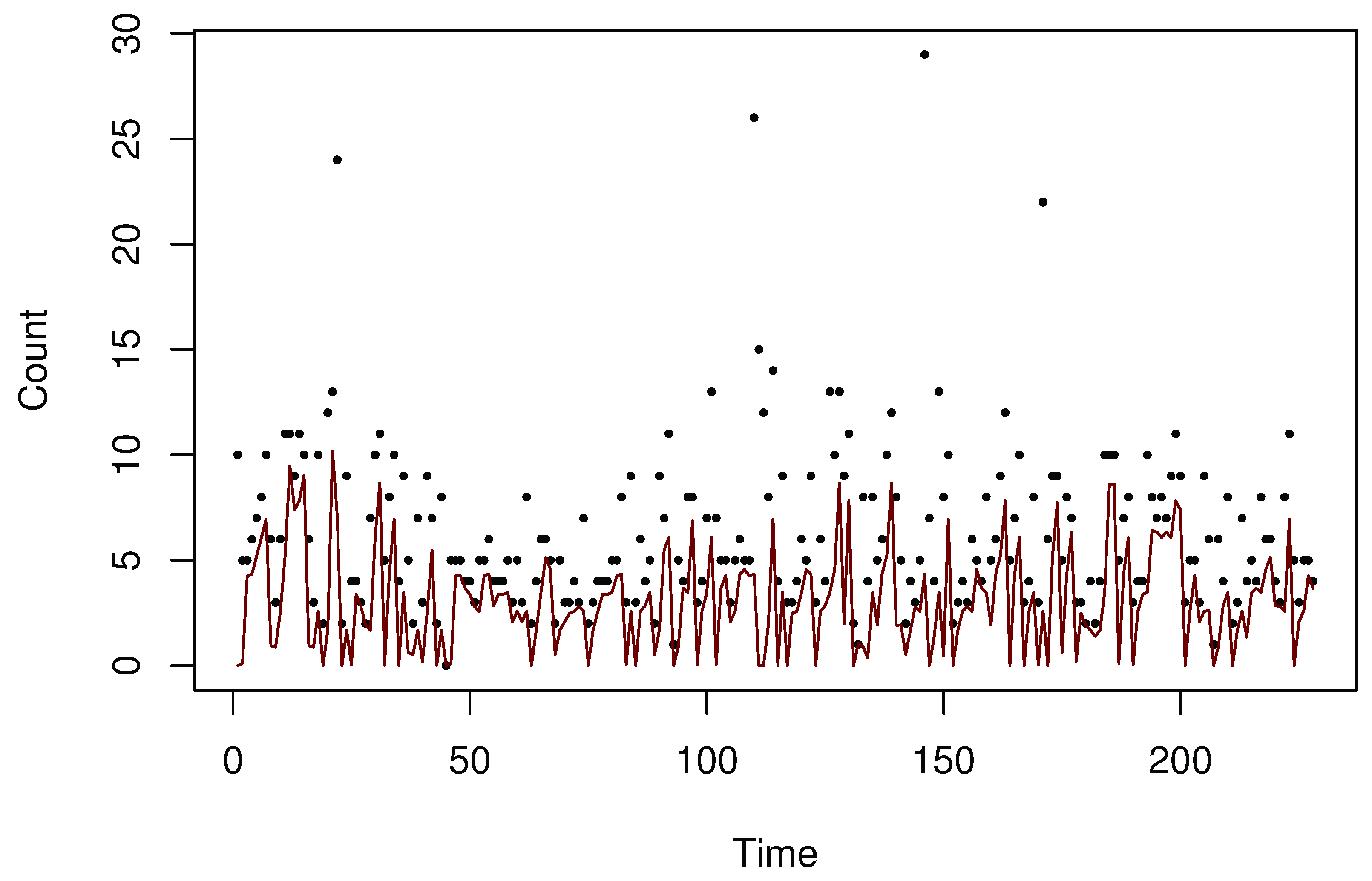 5] applied state space models for multivariate count time series and used them to analyze a market dataset. One major advantage of copula-based methods is that they can separate the modeling of marginal and temporal dependence. Bradshaw and Blei [