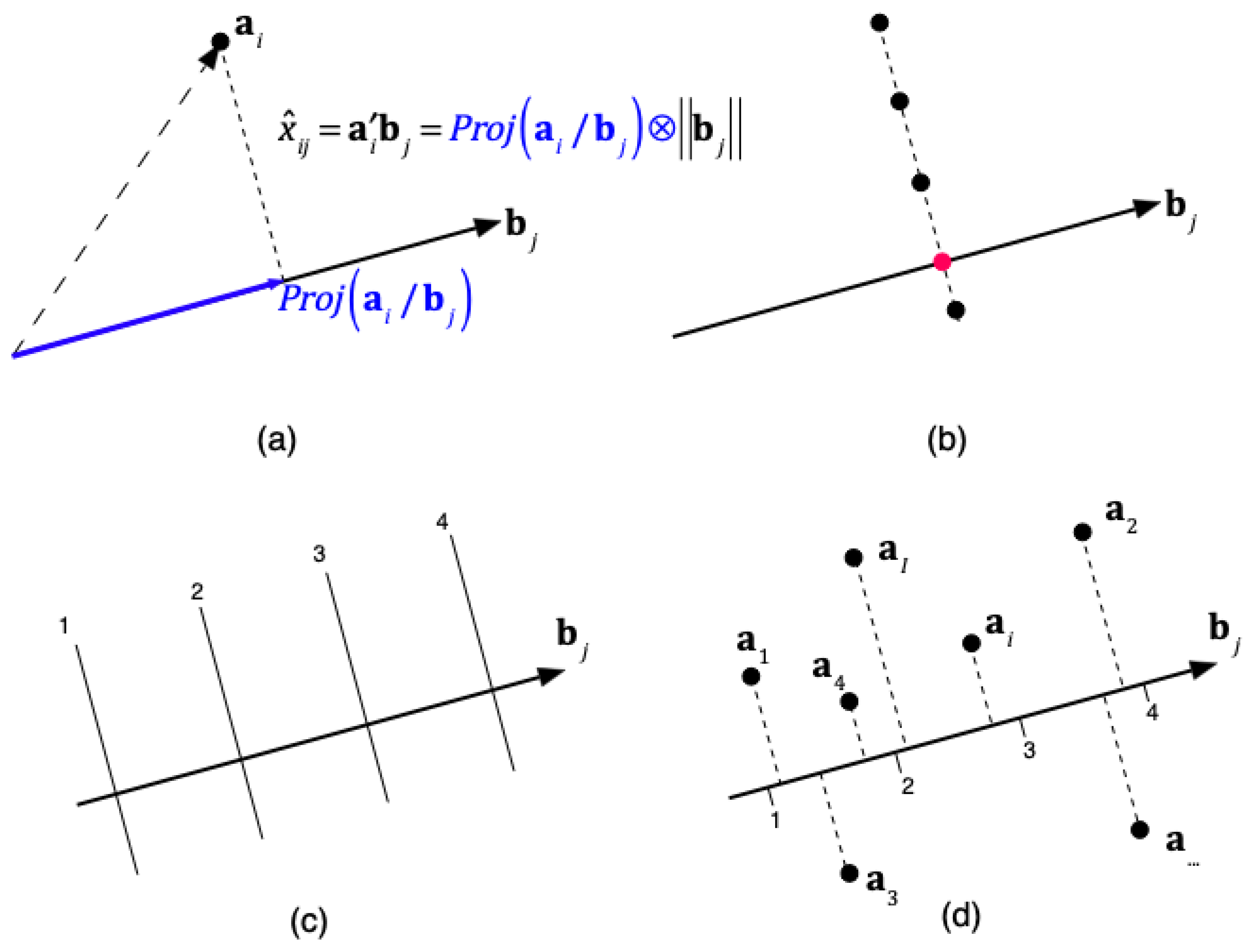 As previously discussed, the projection of individual points onto the variable axes allows for the prediction of the original categories by identifying the prediction region in which the projection falls.
