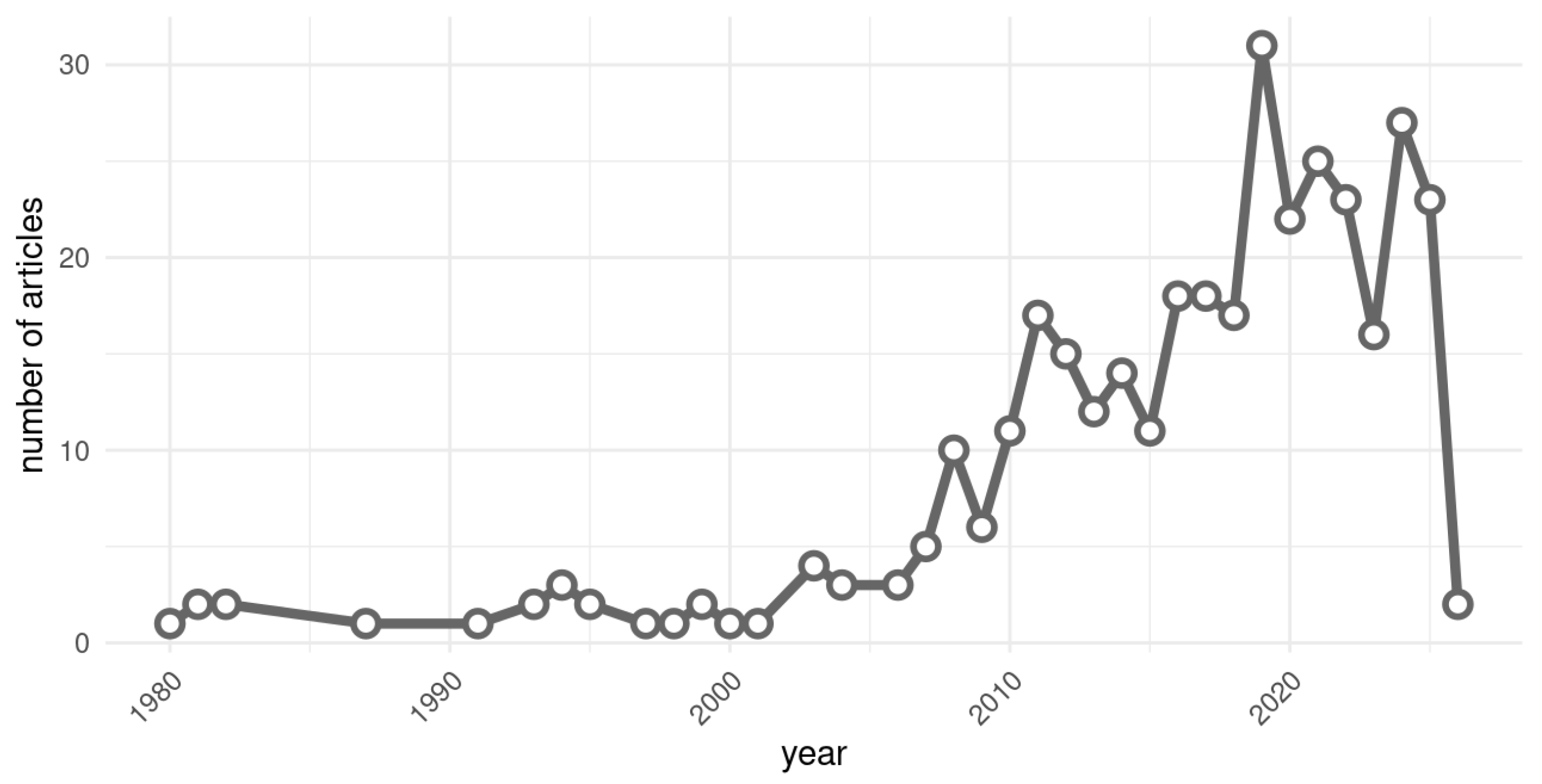 - Inclusion of peer-reviewed items (journal articles and peer-reviewed conference proceedings).
