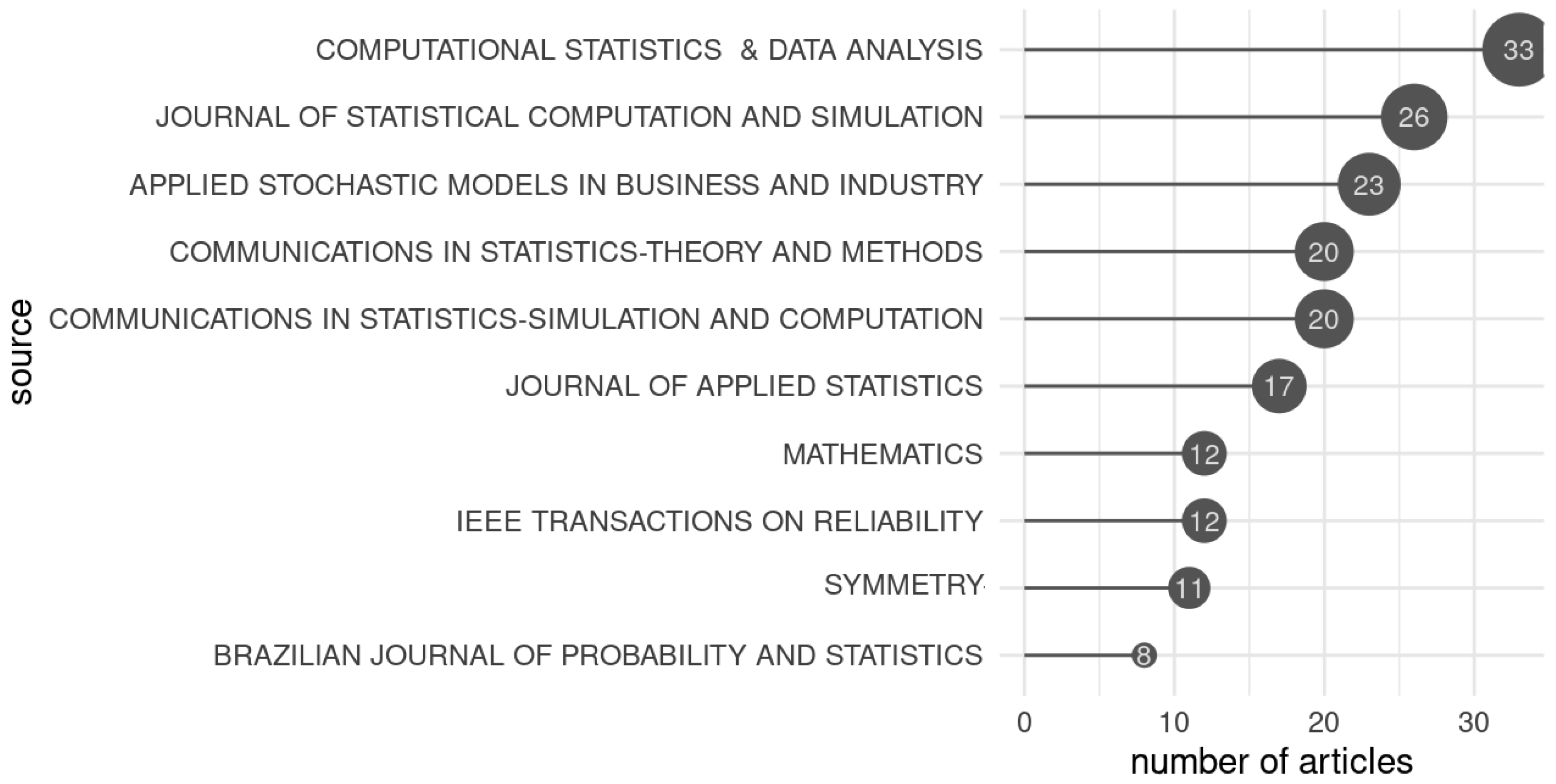 | Leiva V; Barros M; Paula GA; Sanhueza A [72] | Generalized Birnbaum-Saunders distributions applied to air pollutant concentration | Environmetrics | 2008 | 97 |