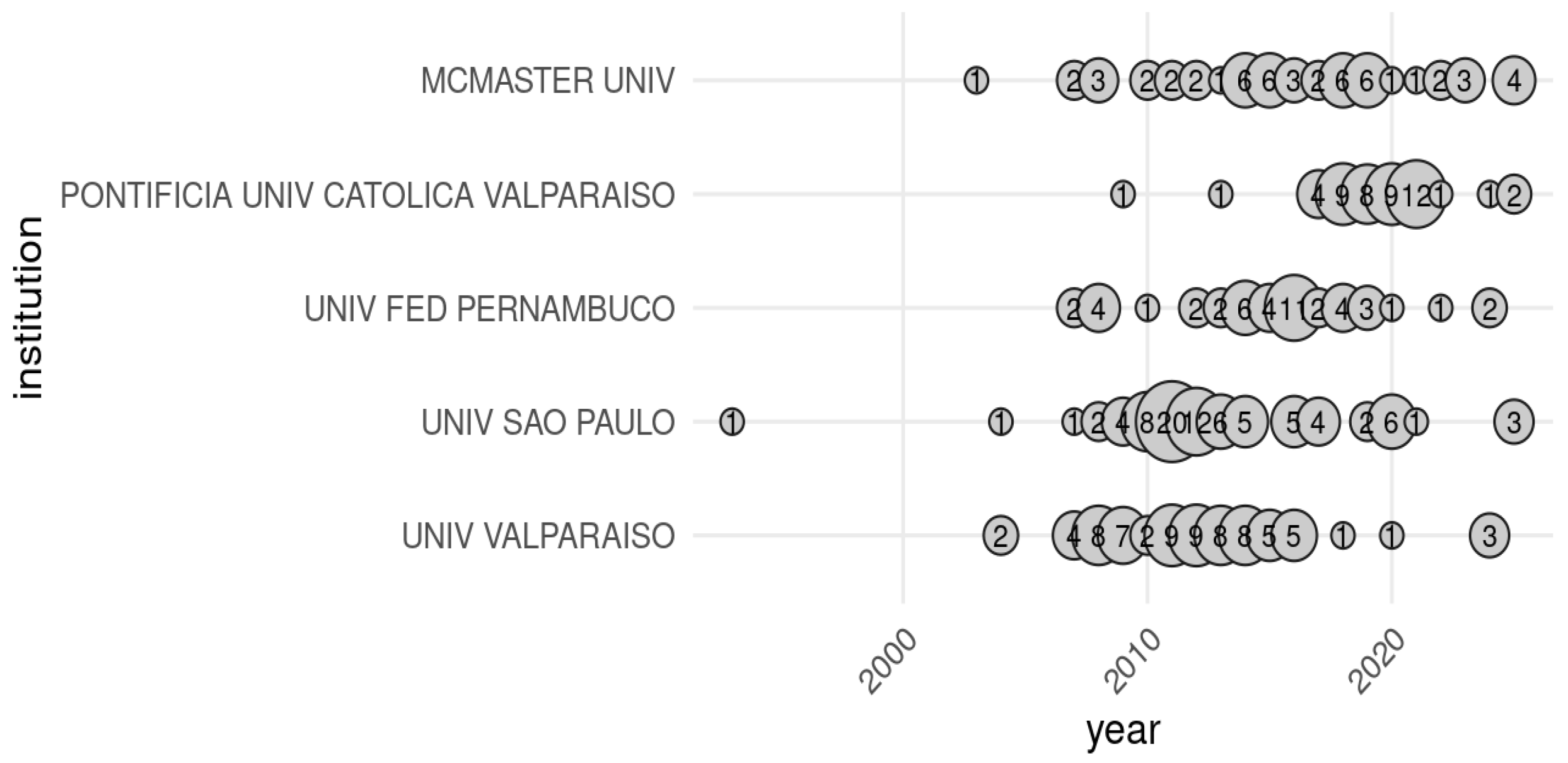- RQ3 [Structural characteristics and gaps in the literature] The field is characterized by a substantial output of original research articles (over 350 works examined), with the highest frequency of publications recorded near 2019. The collaboration landscape reveals significant international partnerships, most notably the strong axis between Brazil and Chile. Concerning dissemination, the journal Computational Statistics and Data Analysis stands out as an exceptionally influential publication venue. A critical deficiency noted is the scarcity of structured review papers and the need for user-friendly, auditable software tools.