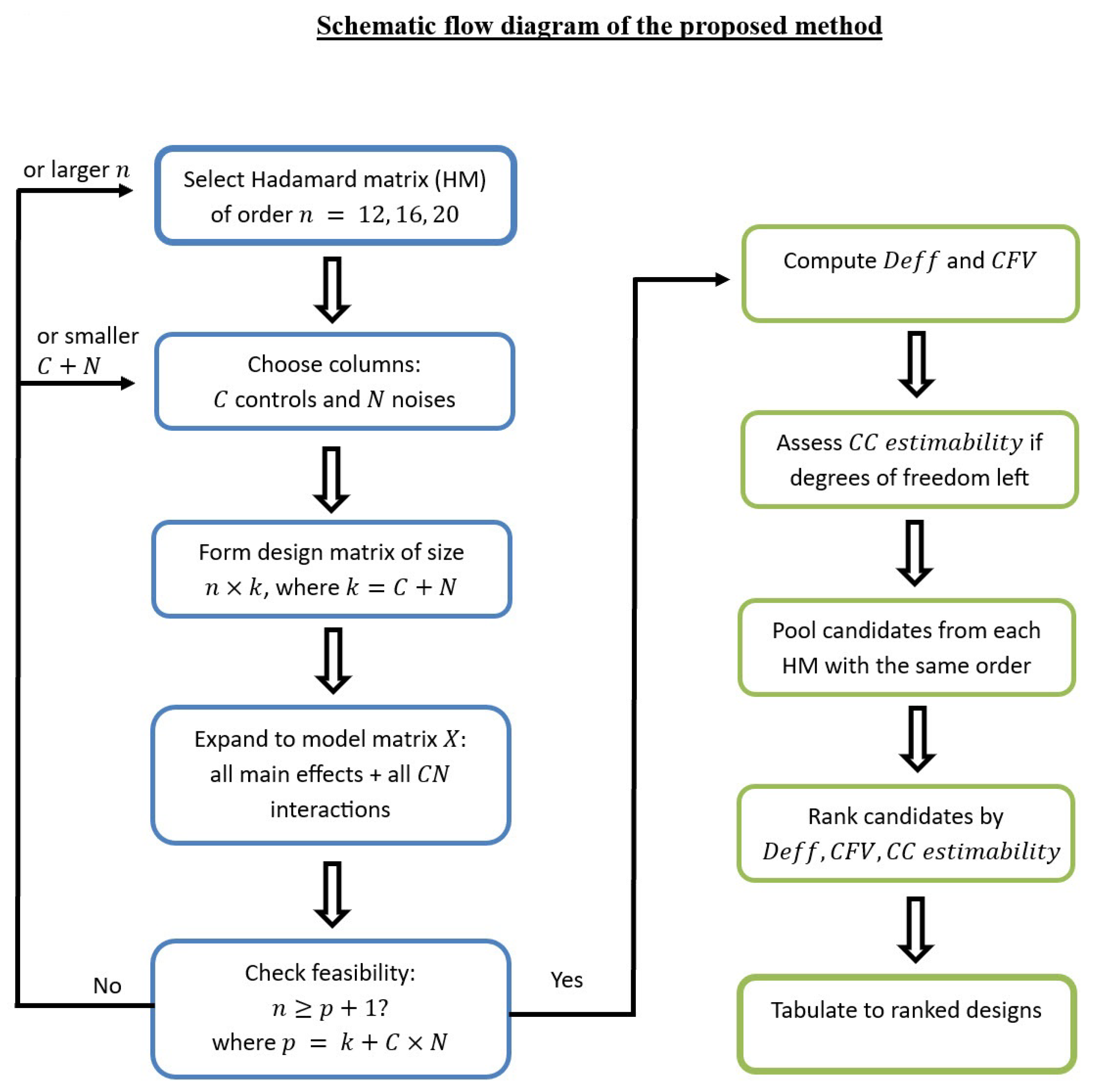 23]) and assess the ability to estimate one or more CC interactions whenever sufficient degrees of freedom are available. Finally, all good RPDs derived from Hadamard matrices of the same order are combined and ranked by