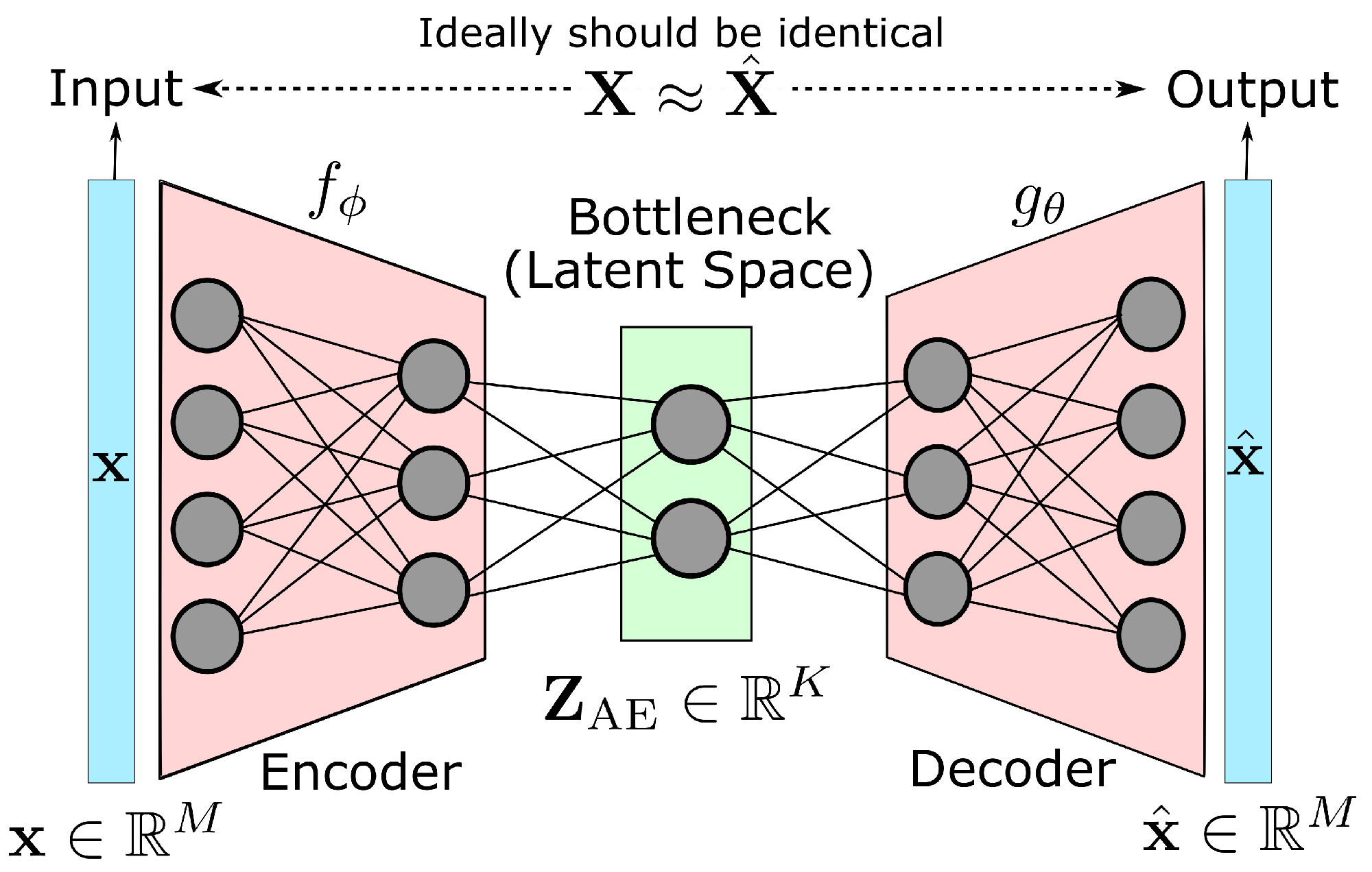 - Single Hidden Layer: One bottleneck layer of dimension , where M is the input dimension.
