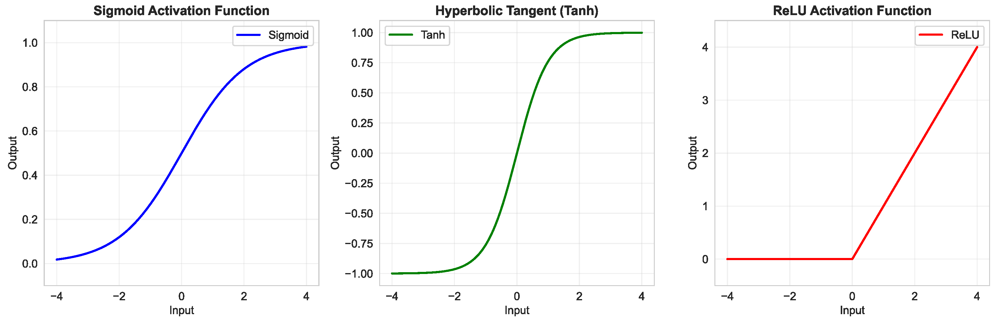 - Tanh Activation: Used for data normalized to the range , which is common when working with preprocessed image datasets where zero-centered data is beneficial.
