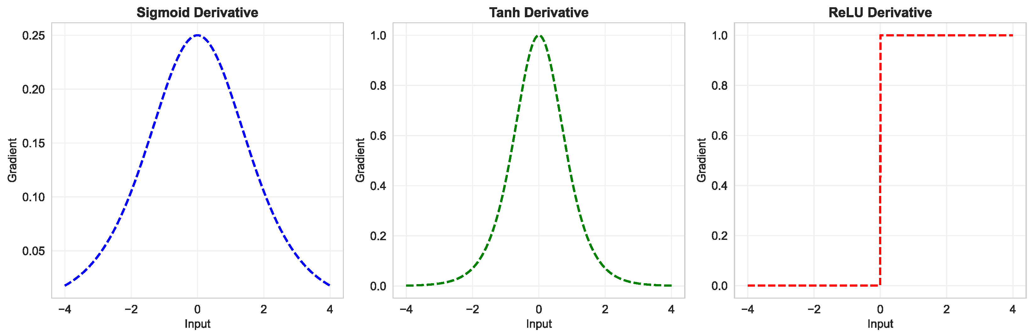 - ReLU’s Superior Gradient Preservation: ReLU demonstrates the most balanced gradient distribution, with hidden layer gradients reaching 26.1–69.6% of output layer values. The constant derivative of 1 for positive inputs prevents gradient attenuation entirely in the forward pass, although it can suffer from the “dying ReLU” problem for negative inputs.