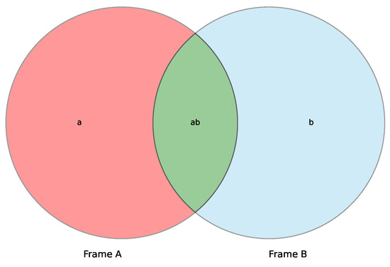 More generally, the situation can be expounded as follows: let be a collection of frames. The sample data collected from a generic frame can be classified into disjoint domains . The potential number of non-empty domains allowed for each frame is defined as . Table 1 reports the case of frames: where four domains can be identified in each frame. For instance, for frame A, the domains are as follows: .