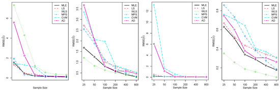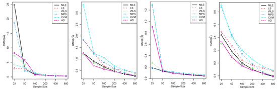 In statistical analysis, estimating the unknown parameters for a given sample is an important concept. In this section, we estimate the unknown parameters of the EHL-Harris-G family of distributions by using six different estimation methods. Let denote the vector of model parameters.
