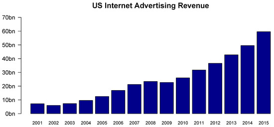 US Internet Advertising Revenue from 2001 to 2015. Source: [1].