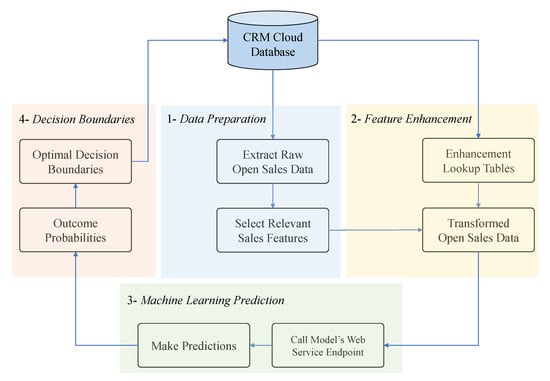 - Yan, J.; Gong, M.; Sun, C.; Huang, J.; Chu, S.M. Sales pipeline win propensity prediction: A regression approach. In Proceedings of the 2015 IFIP/IEEE International Symposium on Integrated Network Management (IM), Ottawa, ON, Canada, 11–15 May 2015; pp. 854–857. [Google Scholar]