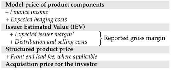 Following the definition, the Issuer Estimated Value consists of a model price of the product components adjusted for finance income and hedging costs. Nevertheless, the definition of hedging costs in particular has weak points as the fairness code only states it includes “trading costs or bid-ask spreads” [