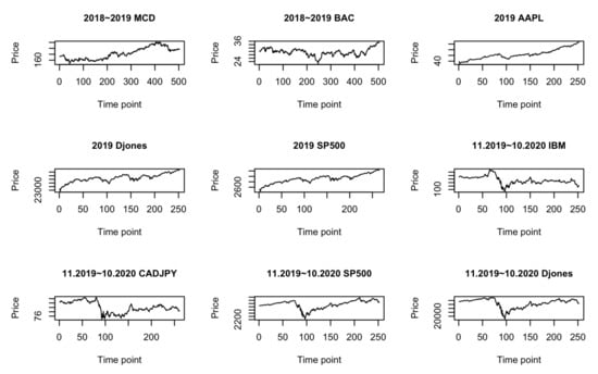 We collected all data presented here from www.investing.com (accessed on 3 November 2021) manually. Then, we transformed the closing price data into financial log-returns based on Equation (13).