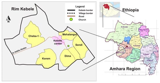 Rim Kebele is located in Mecha Woreda, West Gojjam Zone of Amhara Region, Ethiopia [64] (Figure 1). We chose this Kebele due to the high reliance of farmers on using rainfed agriculture systems.