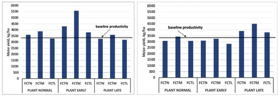 For normal rainfall and farming activities such as fertilizer use, chemical inputs, and tillage frequencies (FCT), the normal crop model is calibrated to 3466 kg/ha. We took this as a baseline productivity to see the impact of yield changes under different treatments such as planting early, normal, and late under more rainfall or less rainfall conditions (Figure 6).