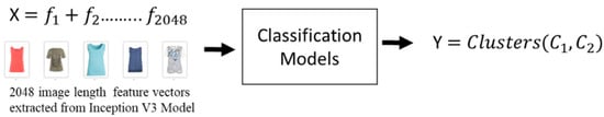 For the classification model in this research study, the X variable represents the image features , and the Y variable represents the target variable, that is, cluster labels as illustrated in Figure 3.