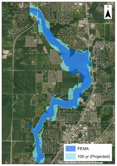 - As per the inundation area analysis, the future projected 100-year flood yielded more spatial coverage than the FEMA flood map, which invites the need to improve flood mitigation measures to handle the uncertainties proposed by climate change.