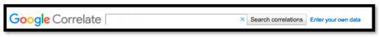 As noted already, for each of these probability distributions, we created a set of approximately 500 random variables. These variables were then uploaded using the “Enter your own data” option in the Google Correlate platform [27]. Figure 1 illustrates the basic input window from Google Correlate. The tool allowed users to enter a search term and find terms with highly correlated search frequencies. It also allowed users to enter their own frequency variable using the “Enter your own data” link shown at the right. We used this method to upload our randomly generated variables and to find search terms that were highly correlated with these random variables.